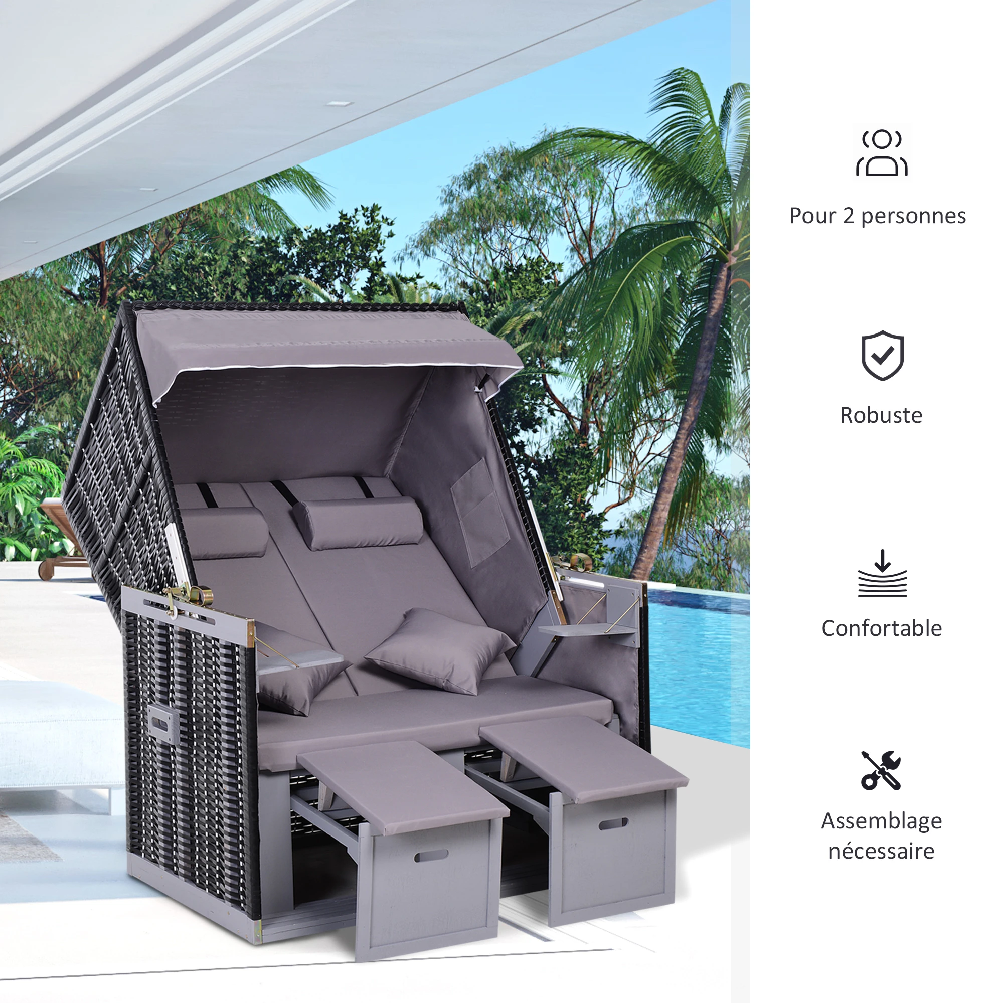 Outsunny Corbeille de plage 2 places pliable – Cabine chaise de plage inclinable